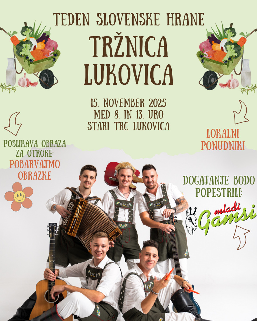 v soboto, 15. novembra 2025 od 8. do 13. ure na Starem trgu v Lukovici.
