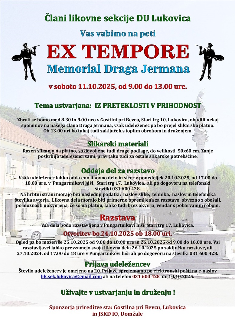 Oktobra je čas, ko Likovna sekcija DU Lukovica organizira že peti Ex Tempore. Vabijo vse, ki radi slikate, da se udeležite njihove prireditve.