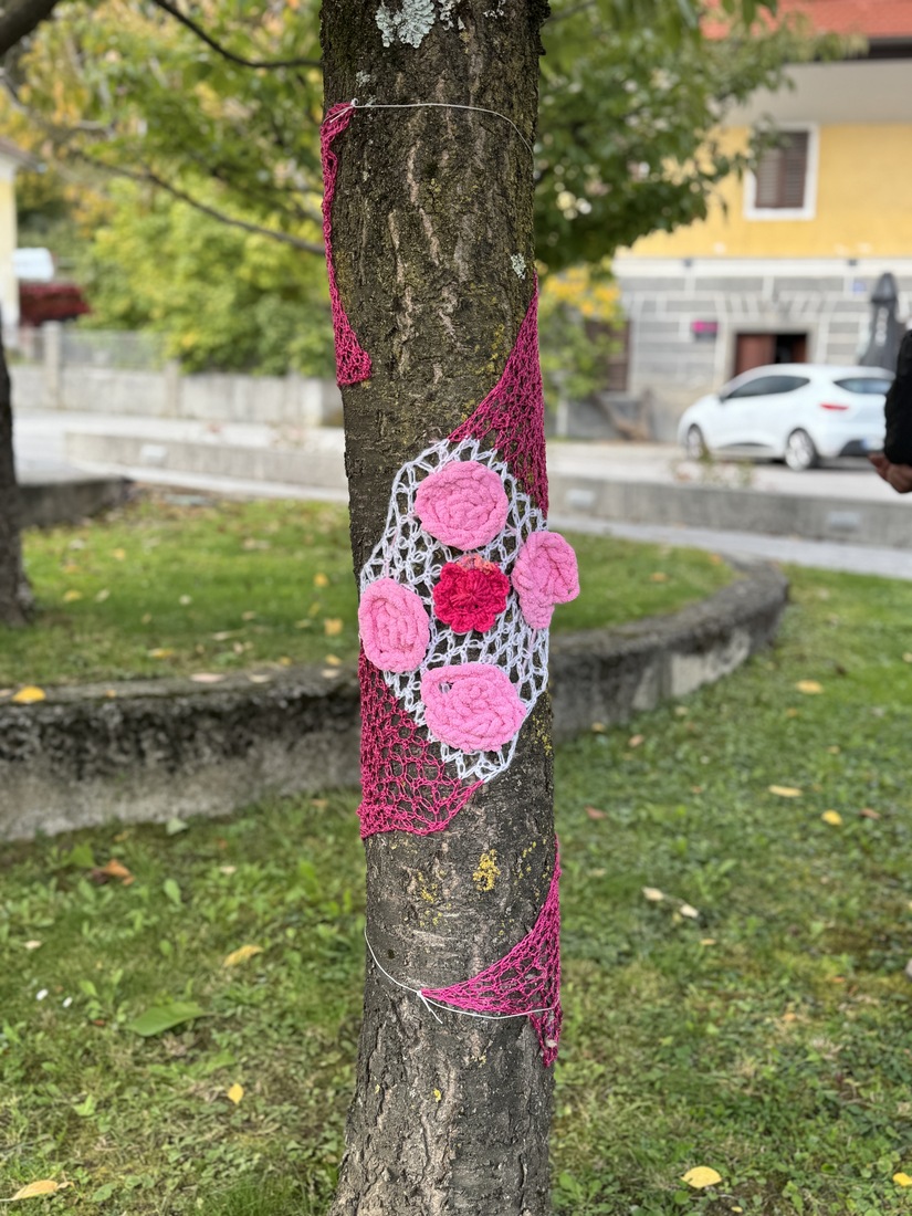 Danes so naše izjemne rokodelke iz Društva upokojencev Lukovica s svojimi rožnatimi šali okrasile drevesa na Starem trgu in ustvarile čudovit simbol upanja – rožnato drevo. 🎀