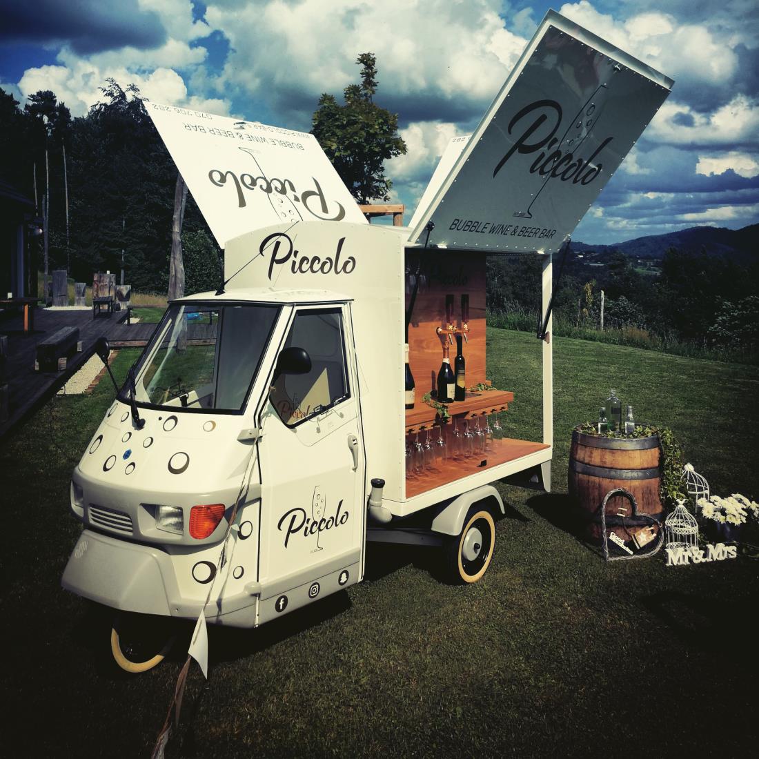 Piccolo je Italijanski trikolesnik, ki sta ga Aleš in Tomaž z ljubeznijo predelala v inovativni koncept mobilnega bara. Piccolo bo vaš dogodek naredil edinstven, izviren in bo še dolgo pustil sled v srcih gostov.