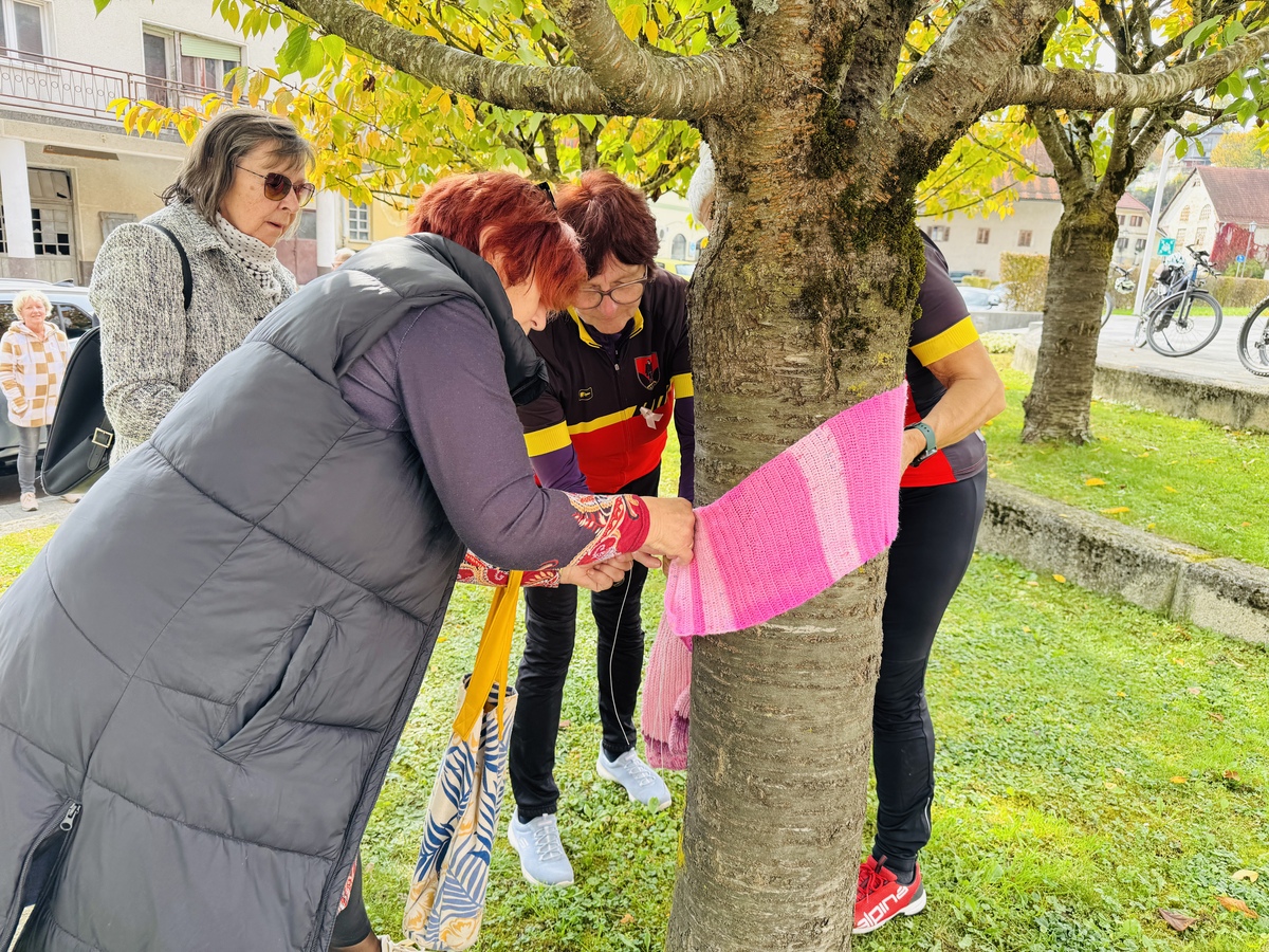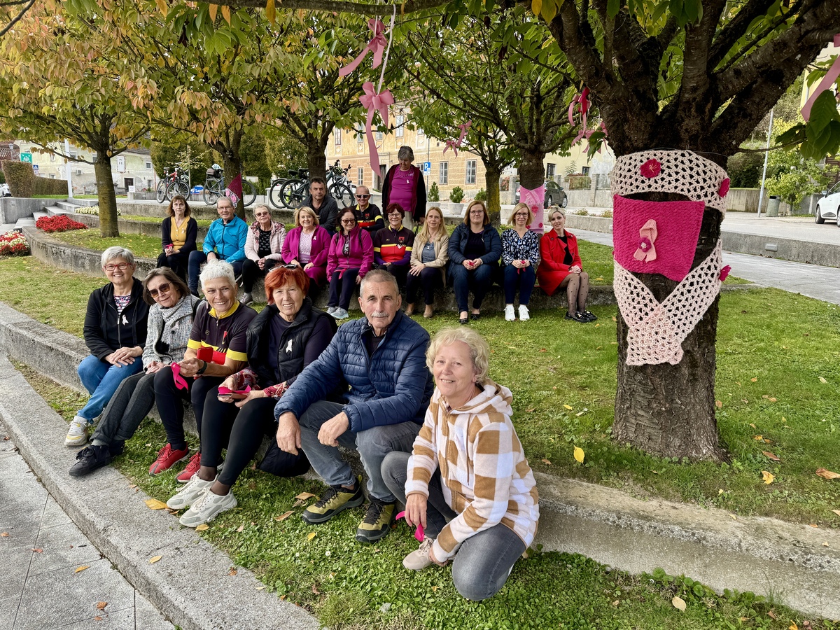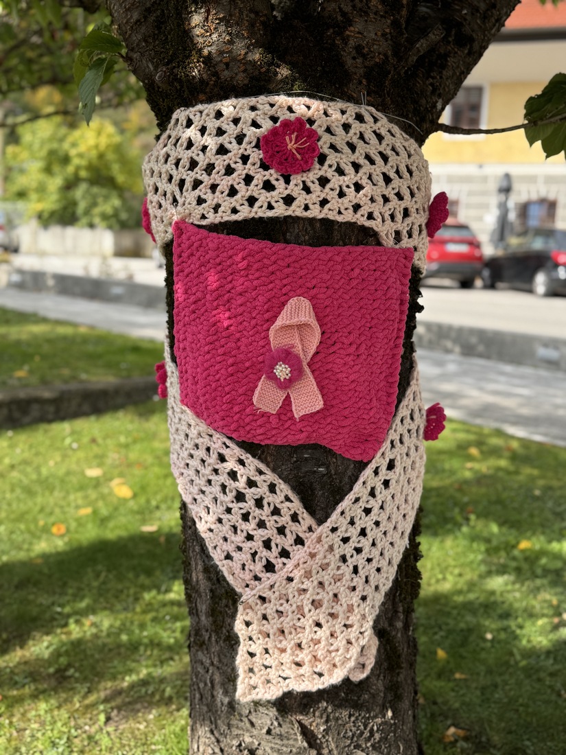 Danes so naše izjemne rokodelke iz Društva upokojencev Lukovica s svojimi rožnatimi šali okrasile drevesa na Starem trgu in ustvarile čudovit simbol upanja – rožnato drevo. 🎀