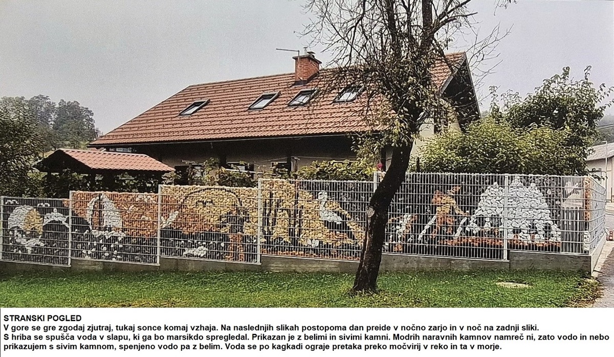 Najprej je bila želja postaviti »nekakšno« protihrupno ograjo. Potem se je ta želja spremenila v »ne kakršno koli« ograjo. Nastale so prve skice in romale v koš. Nato druge, tretje itd. Nato je bilo treba raziskati kakšne kamne je mogoče dobiti in temu prilagoditi motive.