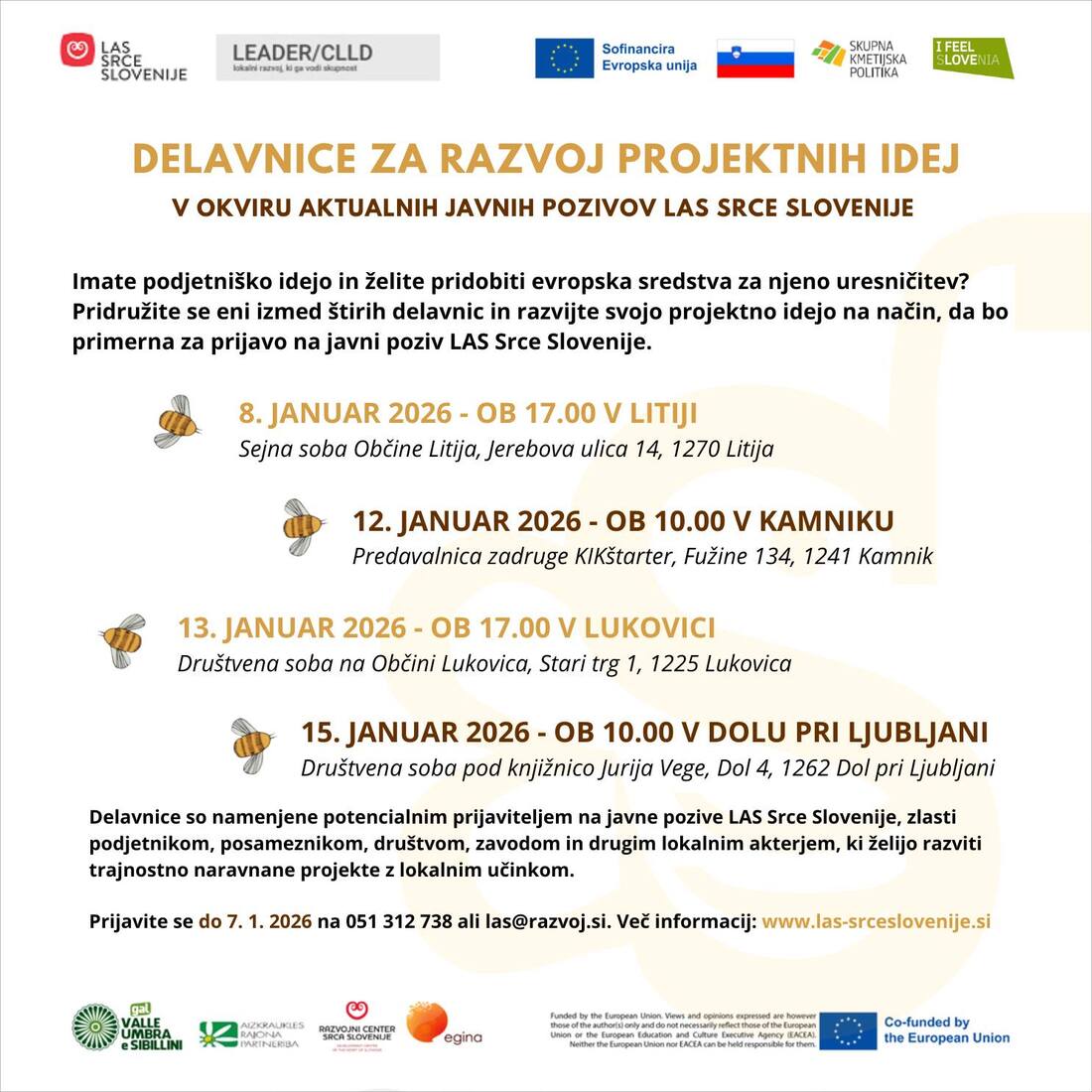 Zaradi lažje organizacije vas prosimo, da se na delavnice prijavite do 7. 1. 2026 na 051 312 738 ali las@razvoj.si.
