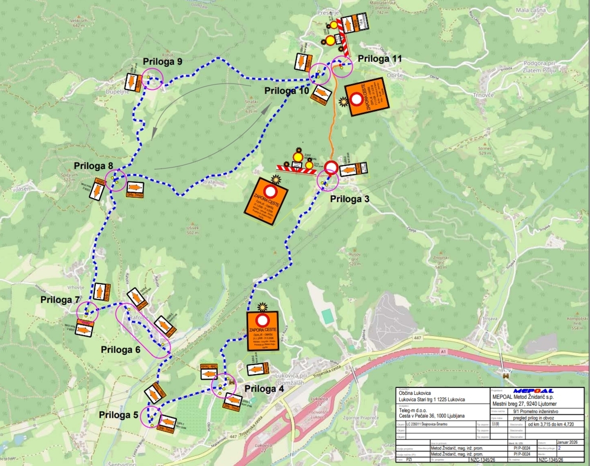 Vse uporabnike lokalne ceste Brdo – Zlato polje obveščamo, da bo z dnem 2.3.2026 ukinjen začasni prehod vzdolž gradbišča v Čepljah. Izvajalec del bo pričel z urejanjem spodnjega ustroja vozišča, pri čemer se bodo dela izvajala po celi širini vozišča in celotni dolžini trase. Dnevni termin izvedbe del bo med 7.00 in 17.00 uro, v tem času bo cesta popolnoma zaprta.