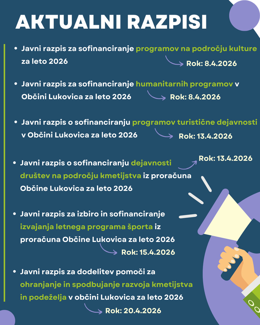 📢 Objavljeni so aktualni razpisi Občine Lukovica!