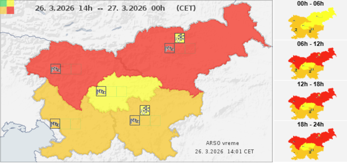 od 26. 3. 2026 do 28.3.2026 izdala rdečo stopnjo vremenskega opozorila.